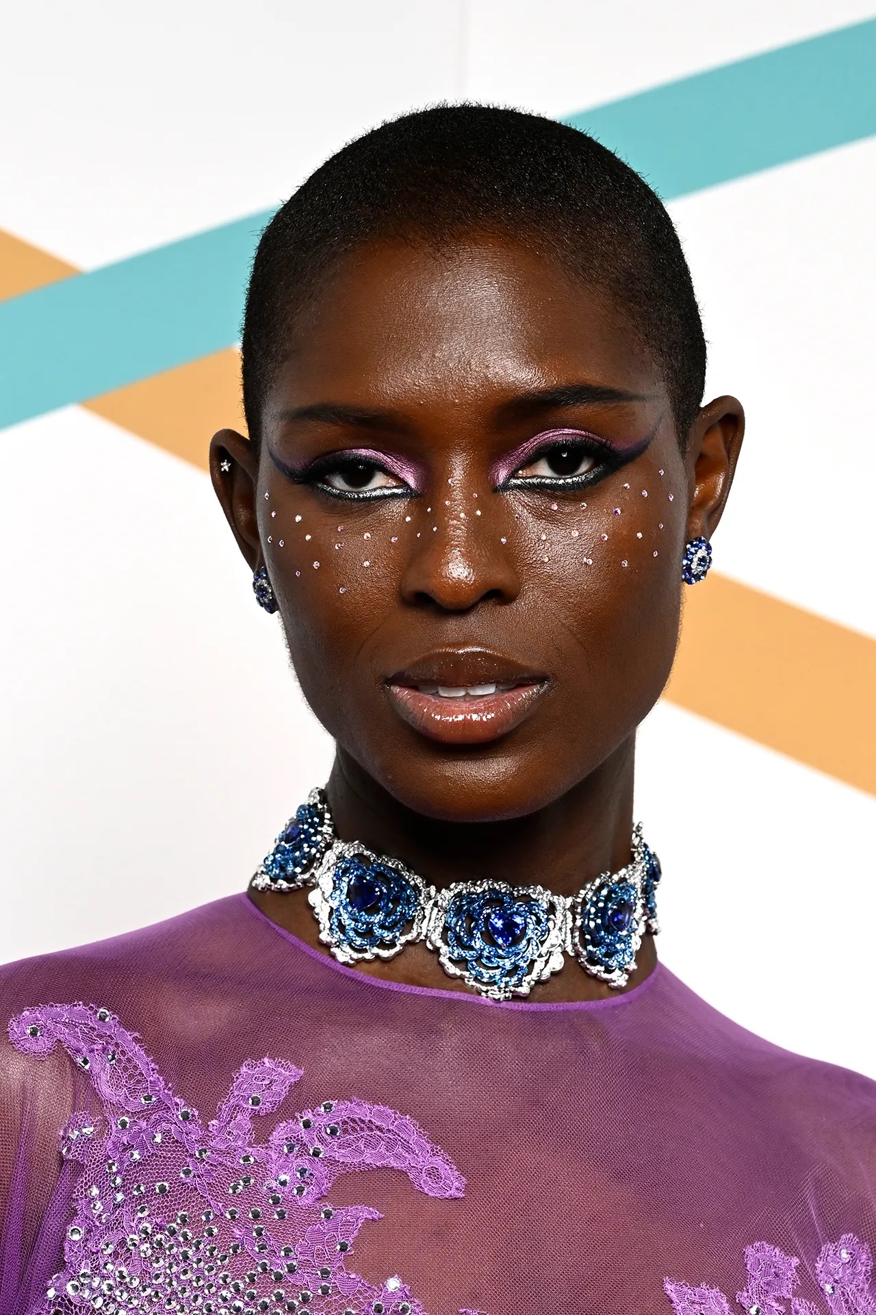 Menyerasikan makeup dengan gaun memang tidak pernah salah. Begitu pula saat Jodie menambahkan face gems sebagai freckles pada makeup metallic shadow dan wing eyeliner dramatis. A winner!